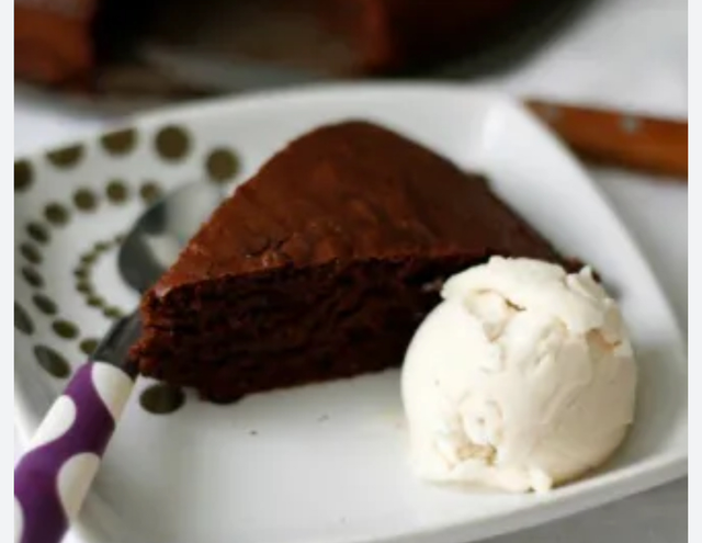 Une part généreuse de notre gâteau maison du jour, accompagnée d'une boule de glace au choix.
